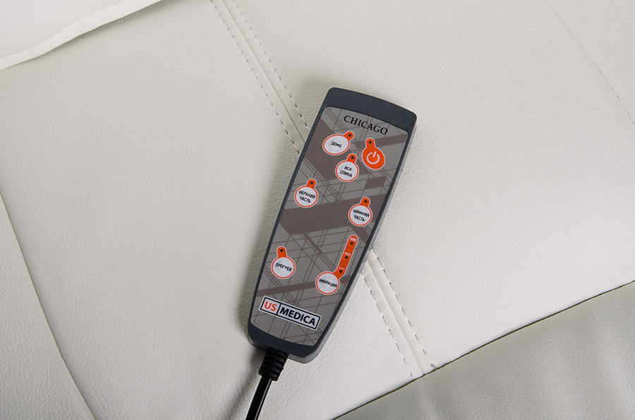 Офисное массажное кресло US Medica Chicago отлично впишется и дома в кабинете или перед компьютером. Массажные программы офисного кресла US Medica Chicago предусмотрены не только для расслабления, но и эффективного восстановления сил как физических, так и умственных. Всего пару минут перерыва на массаж могут сделать рабочий день и продуктивным, и приятным, и не таким сложным как обычно.