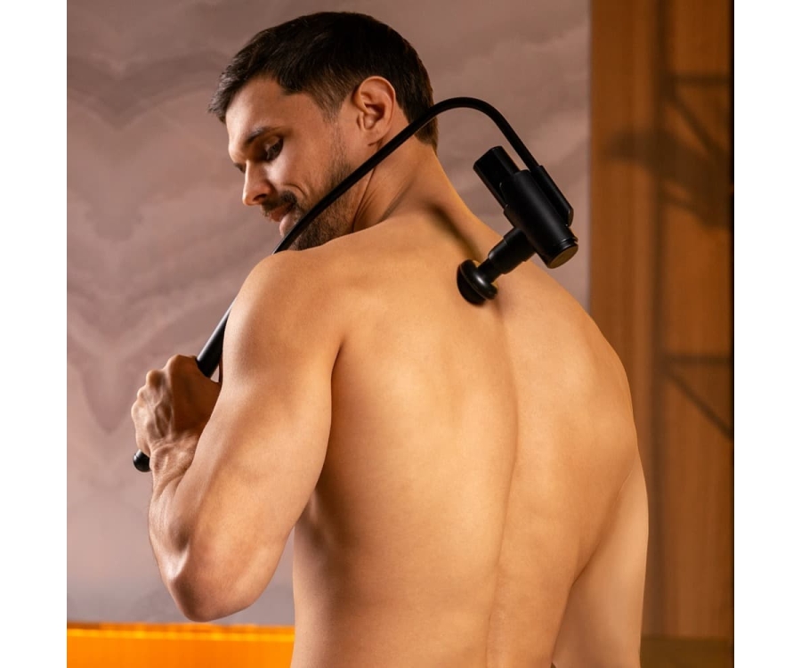 4 сменные анатомические насадки из силикона, наполненные плотным гелем, позволяют выбрать оптимальный рабочий наконечник для проработки конкретных мышечных групп.
