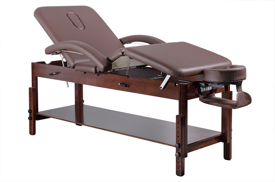 Стационарный массажный стол Yamaguchi Naomi обладает особой конструкцией, благодаря которой можно без особого труда отрегулировать секции для ног и спины